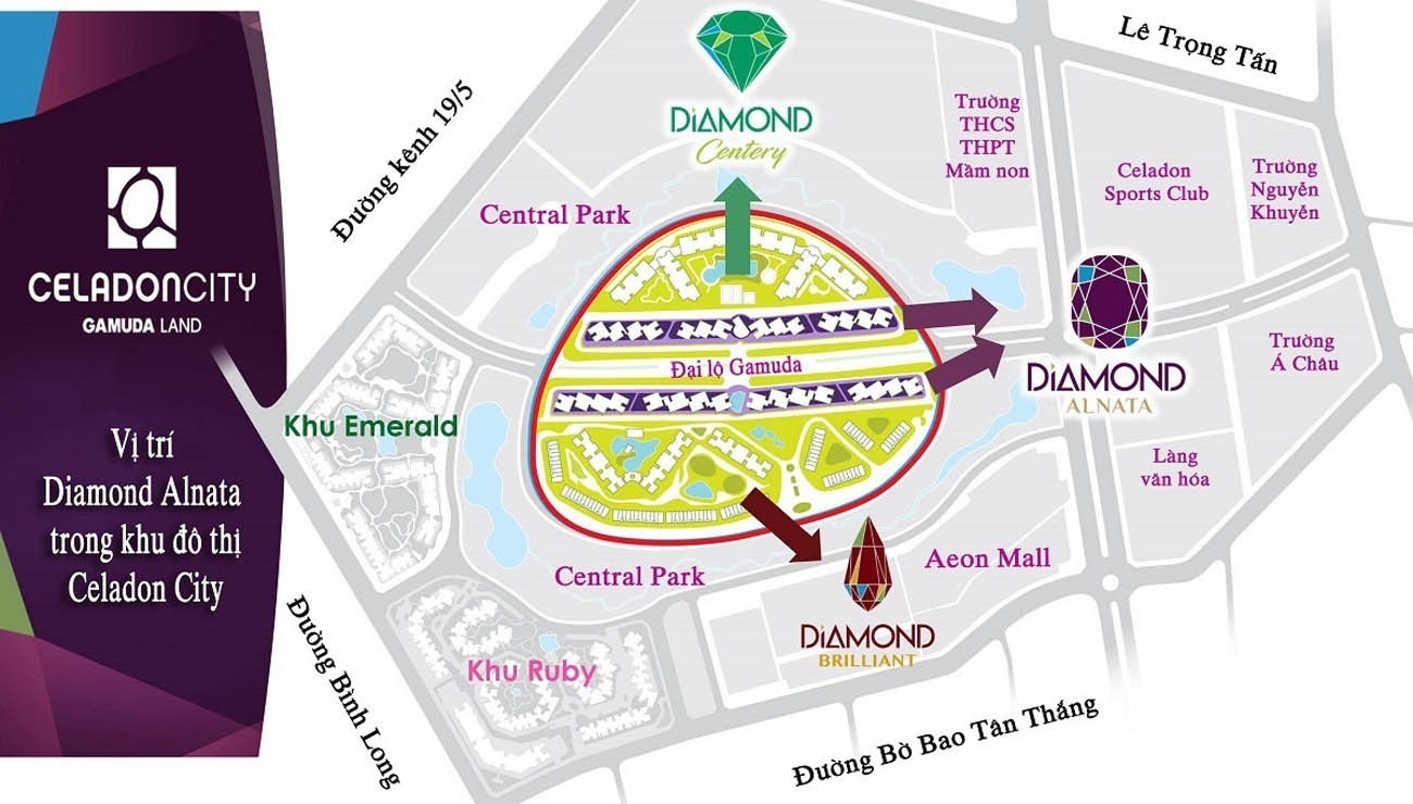 Diamond Alnata nằm tại vị trí vùng lõi trung tâm công viên 16 ha của Celadon City